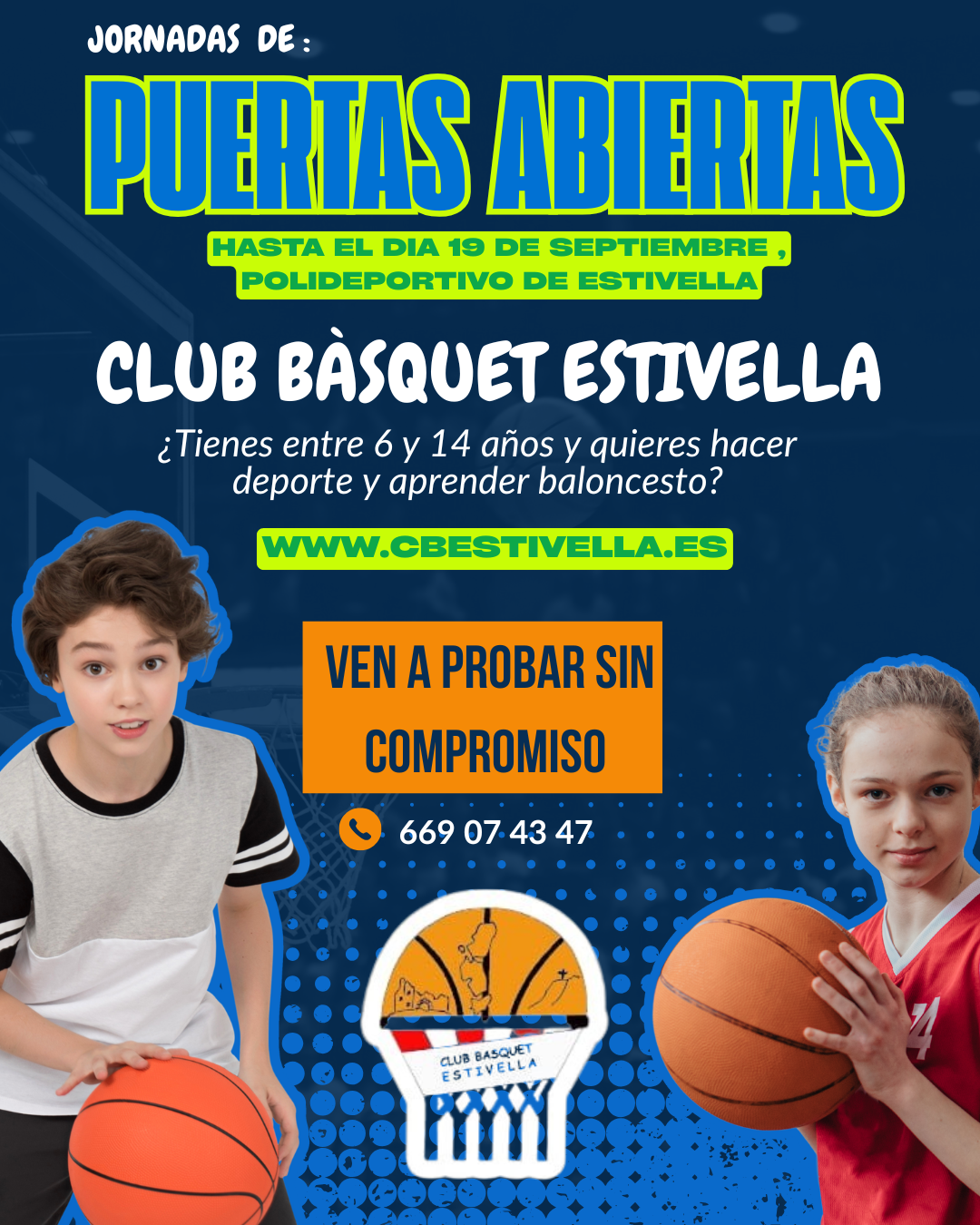 ​¡Ven a nuestras jornadas de puertas abiertas!​¿Te gusta el baloncesto? ¿Quieres probar un deporte nuevo y divertido?​El Club Bàsquet Estivella te invita a sus jornadas de puertas abiertas, pensadas para niños y niñas de 6 a 14 años.​Será la oportunidad perfecta para conocer nuestro club,...